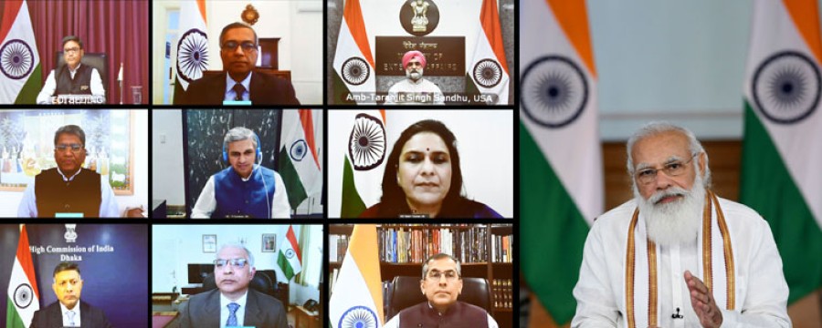 पीएम की विदेशों में भारतीय मिशन प्रमुखों व हितधारकों से कॉंफ्रेंसिंग