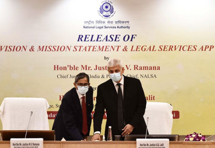 नई दिल्ली। भारत में न्याय हासिल करना महज एक आकांक्षापूर्ण लक्ष्य नहीं है, इसे व्यावहारिक वास्तविकता बनाने केलिए हमें सरकार के विभिन्न अंगों के साथ मिलजुलकर काम करने की आवश्यकता है। भारत के मुख्य न्यायाधीश और राष्ट्रीय विधि सेवा प्राधिकरण (नालसा) के मुख्य संरक्षक एनवी रमण ने नई दिल्ली में एक कार्यक्रम में यह बात कही। मुख्य न्यायाधीश ने नालसा के विजन एवं मिशन ब्यौरे और कानूनी सेवा मोबाइल एप्लीकेशन को जारी करते हुए कहा कि यदि हम कानून के शासन से चलने वाले समाज के रूपमें बने रहना चाहते हैं तो हमारे लिए अत्यधिक विशेषाधिकार प्राप्त और सबसे कमजोर तबके के बीच न्याय की पहुंच के अंतर को पाटना सबसे ज्यादा जरूरी है। उन्होंने कहा कि सभी लोगों खासकर वंचितों के बीच सांविधानिक अधिकारों और मुफ्त कानूनी सहायता की जानकारी के लिए व्यापक प्रचार-प्रसार जरूरी है।