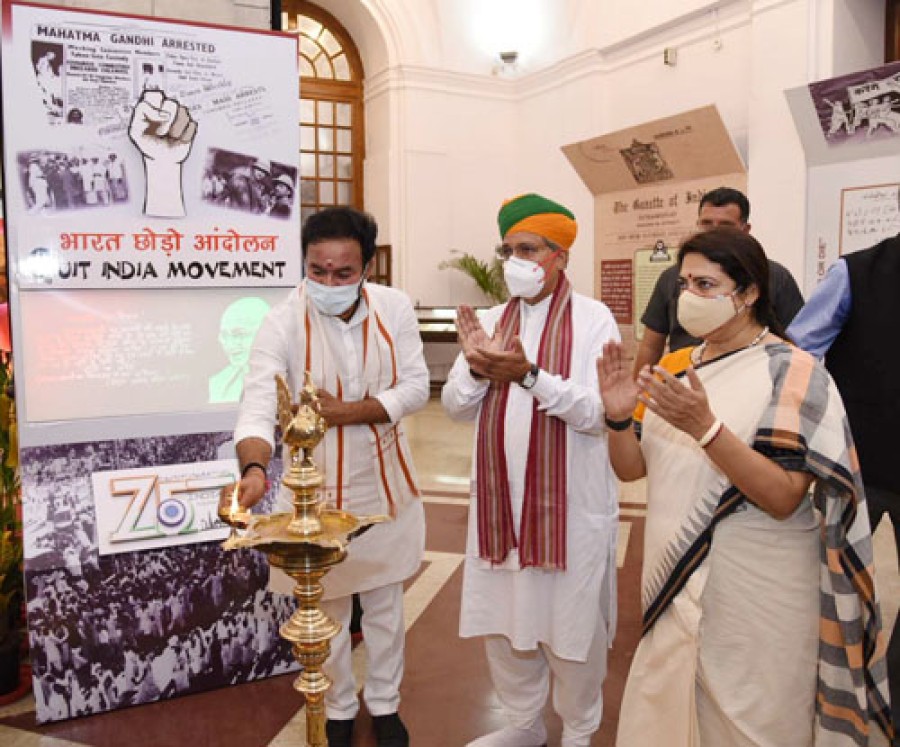 प्रदर्शनी से जुड़े इतिहास पर प्रकाश डालते हुए अर्जुनराम मेघवाल ने कहा कि महात्मा गांधी सहित कई वरिष्ठ नेताओं की गिरफ्तारी के बाद भारत छोड़ो आंदोलन स्वतः स्फूर्त तरीके से देशभर में फैल गया था, उस दौरान आंदोलन की कमान राममनोहर लोहिया, अरुणा आसफ अली, जयप्रकाश नारायण जैसे युवाओं के हाथों में चली आई, वर्ष 1942 के युवाओं ने अपने नेतृत्व कौशल और जनभागीदारी के माध्यम से इस चुनौती को अवसर में बदल दिया और अंग्रेजों को देश छोड़ने पर मजबूर कर दिया। मीनाक्षी लेखी ने कहा कि भारत छोड़ो आंदोलन भारतीय स्वतंत्रता संग्राम में एक महत्वपूर्ण मील का पत्थर था, महात्मा गांधी के नेतृत्व में देशभर के लोग साम्राज्यवाद को उखाड़ फेंकने के लिए एक साथ आए, 1942 में आज ही के दिन गांधीजी ने अंग्रेजों को देश से बाहर निकालने के लिए सभी भारतीयों को 'करो या मरो' का नारा दिया था। उन्होंने कहा कि हमें आजादी तभी मिली जब इस देश के आम लोग इस आंदोलन में शामिल हुए। मेनाक्षी लेखी ने कहा कि स्वतंत्रता आंदोलन की भावना पर इसलिए प्रकाश डाला जा रहा है, ताकि युवा और आने वाली पीढ़ियां उस समय के हमारे देशवासियों के बलिदानों के बारे में जान सकें। प्रदर्शनी में कई खंड हैं, जो भारत छोड़ो आंदोलन से जुड़ी परिस्थितियों को रेखांकित करते हैं-यह कैसे एक जन आंदोलन बन गया, भारत छोड़ो आंदोलन के नायक, जमीन पर इसका प्रभाव, इस आंदोलन की छाप, औपनिवेशिक शासकों द्वारा अत्याचार और अन्य लोगों पर इसका असर।