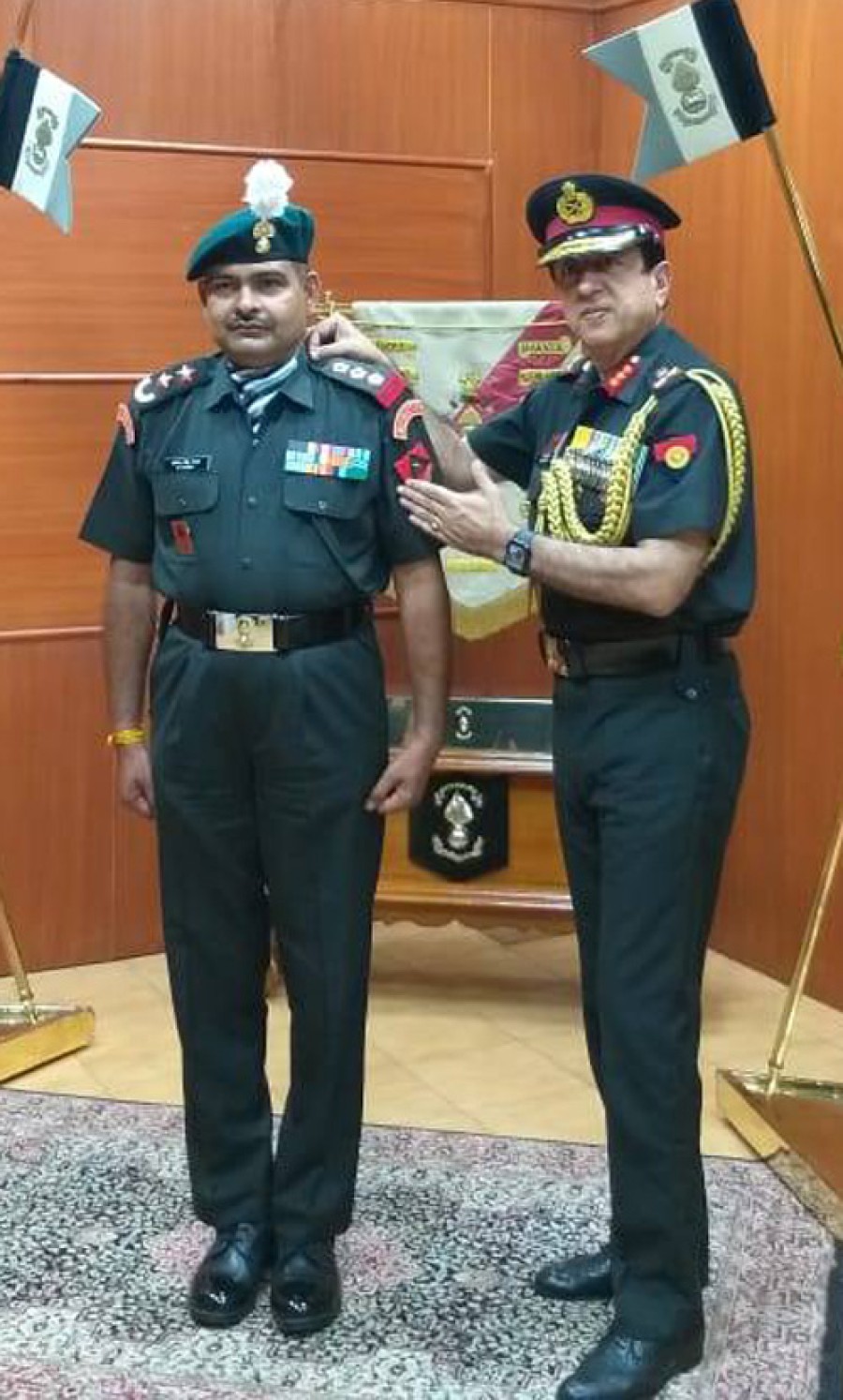 सैन्य सचिव व कर्नल द ग्रेनेडियर्स ने मेजर योगेंद्र यादव को बैज लगाए