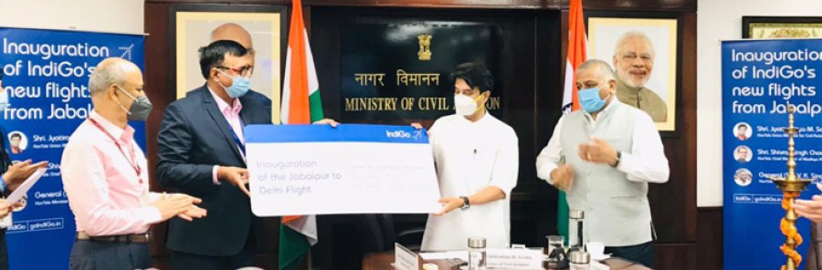 नई दिल्ली/ जबलपुर। केंद्रीय नागरिक उड्डयन मंत्री ज्योतिरादित्य एम सिंधिया और नागरिक उड्डयन राज्यमंत्री जनरल (डॉ) वीके सिंह (सेवानिवृत्त) ने नागरिक उड्डयन मंत्रालय के सचिव प्रदीप खरोला के साथ वर्चुअल रूपसे जबलपुर-दिल्ली सेक्टर केलिए इंडिगो उड़ान को झंडी दिखाई। नागरिक उड्डयन मंत्री ज्योतिरादित्य सिंधिया ने इस अवसर पर कहा कि प्रधानमंत्री नरेंद्र मोदी के नेतृत्व में पिछले सात वर्ष में भारतीय उड्डयन का जनतंत्रीकरण संभव हो पाया है, जो उड्डयन आम लोगों केलिए दूर का सपना था, वह अब सभी केलिए सुलभ होता जा रहा है। उन्होंने कहा कि जबलपुर मध्यप्रदेश के सबसे महत्वपूर्ण शहरों में से एक है, इस शहर में विभिन्न सेक्टरों केलिए कई प्रकार के अवसरों की संभावना है।