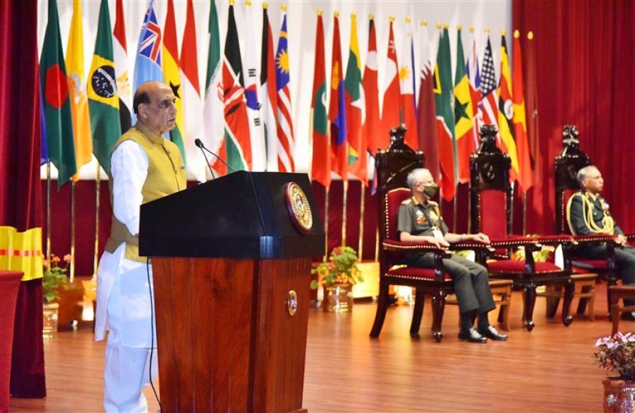 रक्षामंत्री राजनाथ सिंह ने राष्ट्र की सेवा में अपने प्राणों की आहुति देने वाले सैनिकों को श्रद्धांजलि अर्पित की। साइबर युद्ध और जैविक हमलों पर अपनी अंतर्दृष्टि साझा करते हुए राजनाथ सिंह ने कहा कि राष्ट्रीय सुरक्षा को भौगोलिक सीमाओं से जोड़ने की अवधारणा बदल गई है और वैश्विक शक्तियों का संरेखण और पुन: संरेखण होने से पहले से ही परिवर्तनशील सुरक्षा चुनौतियां बढ़ी हैं। उन्होंने कहा कि सरकार राष्ट्रीय सुरक्षा केलिए इन नए और उभरते खतरों से निपटने केलिए क्षमताओं को विकसित करने केलिए सभी प्रयास कर रही है। अफगानिस्तान के हालात को चुनौतीपूर्ण बताते हुए रक्षामंत्री ने कहा कि बदलते समीकरणों ने हर देश को अपनी रक्षा रणनीति पर सोचने पर मजबूर कर दिया है। उन्होंने कहा कि क्वाड, भारत, ऑस्ट्रेलिया, अमेरिका और जापान का एक समूह इस पृष्ठभूमि के तहत बनाया गया है। राजनाथ सिंह ने राष्ट्रीय सुरक्षा के हर आयाम को एक फ्रेम में देखने की आवश्यकता पर बल दिया और आशा व्यक्त की कि डीएसएससी इन चुनौतियों से निपटने केलिए सशस्त्र बलों के भविष्य के अधिकारियों को प्रशिक्षित और सुसज्जित करेगा।