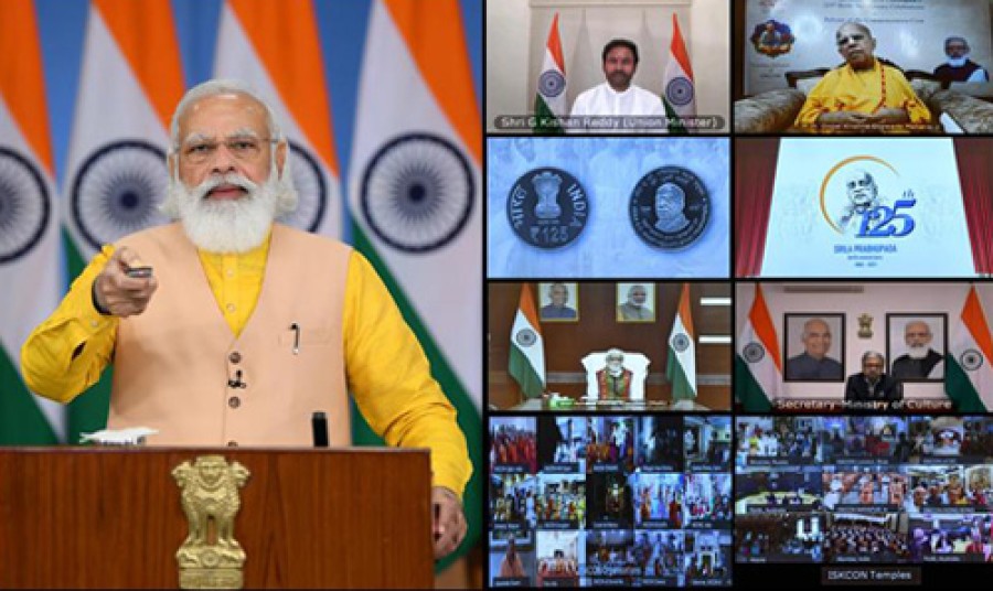नई दिल्ली। प्रधानमंत्री नरेंद्र मोदी ने वीडियो कॉंफ्रेंस के जरिए श्रील अभयचरणारविंद भक्तिवेदांत स्वामी प्रभुपाद की 125वीं जयंती पर एक विशेष स्मारक सिक्का जारी किया और कहा है कि आजादी का अमृत महोत्सव मनाए जाने के बीच यह अवसर आया है, इसी भाव को पूरी दुनिया में श्रील प्रभुपाद स्वामी के लाखों करोड़ों अनुयाई और लाखों करोड़ों कृष्णभक्त अनुभव कर रहे हैं। प्रधानमंत्री ने कहा कि सभी जानते हैं कि प्रभुपाद स्वामी एक अलौकिक कृष्णभक्त तो थे ही, साथ ही वे एक महान भारतभक्त भी थे, उन्होंने देश की स्वतंत्रता केलिए संघर्ष किया था, उन्होंने असहयोग आंदोलन के समर्थन में स्कॉटिश कॉलेज से अपना डिप्लोमा तक लेने से मना कर दिया था। प्रधानमंत्री ने उनके योग का भी उल्लेख किया और कहा कि योग के हमारे ज्ञान का पूरे विश्व में प्रसार हुआ है और भारत की सस्टेनेबल लाइफस्टाइल, आयुर्वेद जैसा विज्ञान दुनियाभर में फैल गया है और हमारा यह संकल्प है कि इसका लाभ पूरे विश्व को मिलना चाहिए।