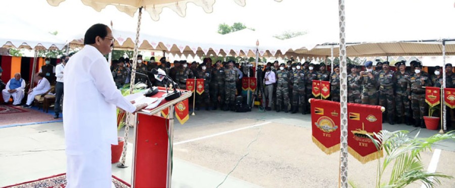 जैसलमेर। उपराष्ट्रपति एम वेंकैया नायडू ने कहा है कि देश के आसपास की भू-राजनैतिक स्थिति तेज़ी से अनिश्चितता में बदल रही है और हम अंदर और बाहर दोनों तरफ से प्रकट और छद्म खतरों का सामना कर रहे हैं। उन्होंने सशस्त्रबलों से आग्रह किया कि वे न केवल पारंपरिक युद्ध की तैयारी में अपनी बढ़त बनाए रखें, बल्कि युद्ध के नए क्षेत्रों जैसे सूचना और साइबर क्षेत्र में भी अपना वर्चस्व स्थापित करने केलिए तैयार रहें, युद्ध क्षेत्र में रोबोटिक्स तथा ड्रोन के बढ़ते प्रयोग केलिए भी तैयारी करें। जैसलमेर में भारतीय सेना के अधिकारियों और जवानों से बातचीत करते हुए उपराष्ट्रपति ने शांति को विकास केलिए आवश्यक शर्त बताया और कहा कि हमारी सेनाओं पर देश की सीमाओं और देश के अंदर शांति और स्थिरता बनाए रखने की महती जिम्मेदारी है। सेना के शौर्य का अभिनंदन करते हुए उपराष्ट्रपति ने कहा कि देश की संप्रभुता को चुनौती देने वाली किसी भी ताकत को हमारी सेनाओं ने मुंहतोड़ जवाब दिया है।