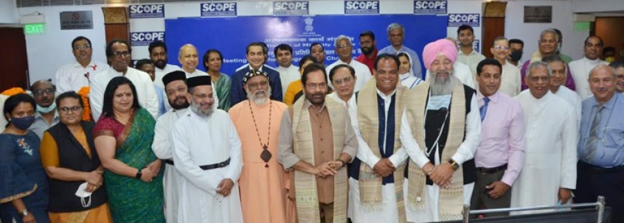 नई दिल्ली। केंद्रीय अल्पसंख्यक कार्य मंत्री मुख्तार अब्बास नकवी ने नई दिल्ली में देशभर के ईसाई समुदाय के प्रमुख लोगों के साथ बातचीत की और कहा कि जबरन धर्म परिवर्तन एक ऐसे देश में किसी भी धर्म के प्रसार और उसमें विश्वास का तरीका नहीं हो सकता, जहां आस्तिक और नास्तिक दोनों एक साथ रहते हों। उन्होंने कहा कि यह सुनिश्चित करना हमारी सामूहिक राष्ट्रीय जिम्मेदारी है कि सहिष्णुता और सह-अस्तित्व के प्रति भारत की वचनबद्धता की संस्कृति कमजोर नहीं पड़ने पाए। अल्पसंख्यक कार्य मंत्री ने कहा कि एकता और सद्भाव के इस ताने-बाने को तोड़ने की कोई भी कोशिश भारत की आत्मा को चोट पहुंचाएगी।