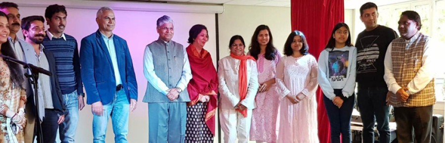 देनहाग में भारतीय दूतावास में जुटे वक्ता और श्रोतागण