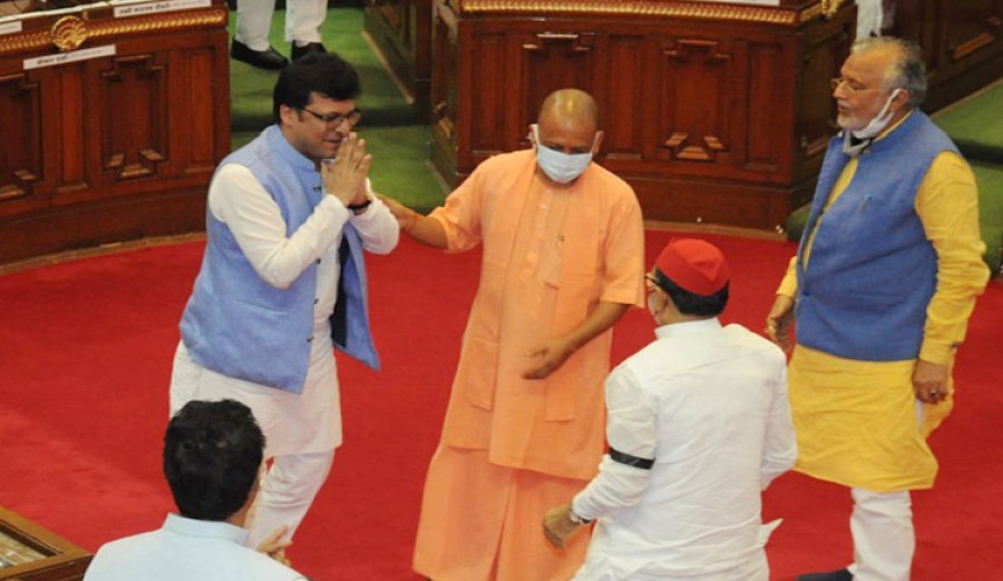 मुख्यमंत्री ने कहा कि विधानसभा अध्यक्ष ह्दयनारायण दीक्षित के मार्गदर्शन एवं संरक्षण में सदन ने पिछले साढ़े चार वर्ष में अनेक कीर्तिमान स्थापित किए हैं, कोरोना कालखंड में भी हमने दलीय नेताओं की बैठक की थी, समाजवादी पार्टी ने तब भी उस बैठक का बहिष्कार ही किया था। योगी आदित्यनाथ ने कहा कि हमने सस्टेनेबल डेवलपमेंट गोल्स को प्राप्त करने के लिए विशेष सत्र का आयोजन किया था, महात्मा गांधी के 150वें जयंती वर्ष में सत्र आहूत किया गया था, सस्टेनेबल डेवलपमेंट गोल्स को यूएन ने 2016 में तत्पश्चात भारत सरकार ने पूरे देश के लिए अंगीकृत किया था, एसडीजी के लक्ष्यों को प्राप्त करने केलिए सदन ने लगातार 36 घंटे चर्चा की थी, लेकिन समाजवादी पार्टी ने तब भी उस सत्र का बहिष्कार किया। मुख्यमंत्री ने कहा कि क्योंकि वह सत्र गरीबी उन्मूलन, नौजवानों को रोज़गार, बेहतर स्वास्थ्य, गुणवत्तायुक्त शिक्षा, किसानों की आय दोगुना करने से संबंधित था, जिससे समाजवादी पार्टी का कोई लेना-देना नहीं है, इसीलिए समाजवादी पार्टी ने उसका विरोध किया। मुख्यमंत्री ने कहा कि नितिन अग्रवाल तकनीकी रूपसे समाजवादी पार्टी के ही सदस्य हैं, सबसे बड़े विपक्षी दल के सदस्य को उपाध्यक्ष का पद मिलना चाहिए था, आखिर यह काम भी संसदीय परम्पराओं का निर्वहन करते हुए भारतीय जनता पार्टी विधानमंडल दल ने किया है।