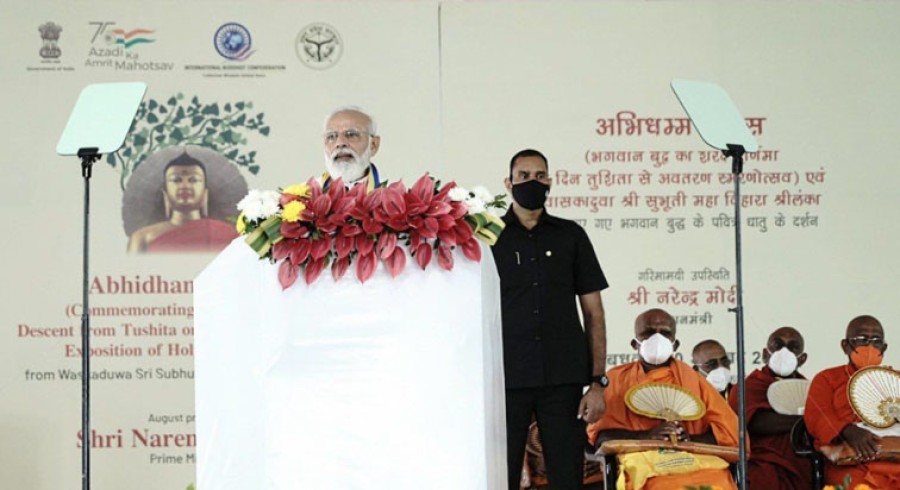 प्रधानमंत्री नरेंद्र मोदी ने कहा कि इस समाचार ने यह विश्वास बढ़ाया था कि बुद्ध का संदेश पूरे विश्व के लिए है, बुद्ध का धम्म मानवता के लिए है। भगवान बुद्ध के संदेश को फैलाने में अंतर्राष्ट्रीय बौद्ध परिसंघ की भूमिका की सराहना करते हुए प्रधानमंत्री ने अंतर्राष्ट्रीय बौद्ध परिसंघ के महानिदेशक शक्ति सिन्हा के योगदान के लिए उन्हें याद किया, जिनका हाल ही में निधन हो चुका है। प्रधानमंत्री ने कहा कि आज एक और महत्वपूर्ण अवसर है-भगवान बुद्ध के तुषिता स्वर्ग से वापस धरती पर आने का! इसलिए आश्विन पूर्णिमा को हमारे भिक्षुगण अपने तीन महीने का ‘वर्षावास’ भी पूरा करते हैं। नरेंद्र मोदी ने कहा कि आज उन्हें भी वर्षावास के उपरांत संघ भिक्षुओं को चीवर दान का सौभाग्य मिला है। प्रधानमंत्री ने कहा कि आज जब दुनिया पर्यावरण संरक्षण की बात करती है, जलवायु परिवर्तन की चिंता जाहिर करती है तो उसके साथ अनेक सवाल उठ खड़े होते हैं, लेकिन अगर हम बुद्ध के संदेश को अपना लेते हैं तो ‘किसको करना है’, इसकी जगह ‘क्या करना है’, इसका मार्ग अपने आप दिखने लगता है।