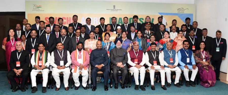 नई दिल्ली। राष्ट्रपति रामनाथ कोविंद ने आज आवास एवं शहरी कार्य मंत्रालय के आयोजित स्वच्छ अमृत महोत्सव को संबोधित किया और स्वच्छ सर्वेक्षण पुरस्कार 2021 प्रदान किए। राष्ट्रपति ने इस अवसर पर कहाकि इस वर्ष के स्वच्छ सर्वेक्षण पुरस्कारों का विशेष महत्व है, क्योंकि हम आजादी का अमृत महोत्सव मना रहे हैं। उन्होंने कहाकि महात्मा गांधी कहा करते थेकि सफाई ईश्वर की भक्ति के समान है, उनके अनुसार स्वच्छता सर्वोच्च प्राथमिकता होनी चाहिए। राष्ट्रपति ने कहाकि गांधीजी की इस प्राथमिकता को भारत सरकार ने स्वच्छ भारत मिशन के माध्यम से एक जन आंदोलन के रूपमें आगे बढ़ाया है। उन्होंने कहाकि देश को पूरी तरह से स्वच्छ और साफ-सुथरा बनाने के हमारे प्रयास हमारे स्वतंत्रता सेनानियों को सच्ची श्रद्धांजलि है। राष्ट्रपति ने कहाकि सफाई मित्रों और सफाई कर्मचारियों ने कोविड महामारी के दौरान भी लगातार अपनी सेवाएं दी हैं।