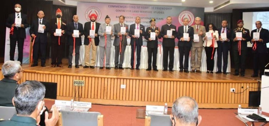 नई दिल्ली। भारत-बांग्लादेश मैत्री के 50 वर्ष पूरे होने और 1971 के भारत-पाकिस्तान युद्ध में भारत की निर्णायक जीत के उपलक्ष्य में इंडिया इंटरनेशनल सेंटर में सेंटर फॉर लैंड वारफेयर स्टडीज की 'भारत-बांग्लादेश: दोस्ती के 50 साल' पर संगोष्ठी का आयोजन किया गया, जिसमें सेनाप्रमुख एवं क्लॉज़ के संरक्षक जनरल एमएम नरवणे, बांग्लादेश के उच्चायुक्त मुहम्मद इमरान और लेफ्टिनेंट जनरल एम हारुन-अर-रशीद बीर प्रोटिक (सेवानिवृत्त) पूर्व सेना प्रमुख बांग्लादेश मुख्य अतिथि थे। यह संगोष्ठी सहवेबिनार भारत-बांग्लादेश द्विपक्षीय संबंधों को बढ़ाने पर केंद्रित है। संगोष्ठी में सॉफ्ट पावर डिप्लोमैटिक टूल्स के रूपमें पर्यटन एवं सामान्य संस्कृति, बेहतर इंफ्रास्ट्रक्चर कनेक्टिविटी यानी ढांचागत संपर्क और आर्थिक एकीकरण की आवश्यकता जैसे उपायों पर विचार-विमर्श किया गया। संगोष्ठी में इस तथ्य पर भी विचार किया गयाकि बढ़े हुए द्विपक्षीय संबंध अधिक चुनौतियां लेकर आते हैं और दोनों देशों को संयुक्त रूपसे धैर्य केसाथ ऐसी चुनौतियों का सामना करने केलिए तैयार रहना चाहिए।