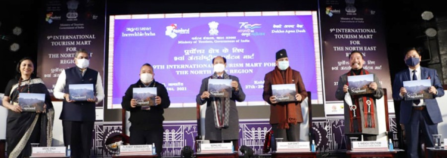 कोहिमा। नागालैंड के मुख्यमंत्री नेफियू रियो, केंद्रीय पर्यटन राज्यमंत्री अजय भट्ट और विधायक एवं नागालैंड सरकार के पर्यटन सलाहकार एच खेहोवी येपुथोमी ने कोहिमा में पूर्वोत्तर क्षेत्र के नौंवे तीन दिवसीय अंतर्राष्ट्रीय पर्यटन मार्ट का संयुक्त रूपसे उद्घाटन किया। इस अवसर पर पर्यटन सचिव अरविंद सिंह, अतिरिक्त महानिदेशक पर्यटन रुपिंदर बराड़, केंद्र सरकार और पूर्वोत्तर राज्य सरकारों के वरिष्ठ अधिकारी भी उपस्थित थे। आयोजन का उद्देश्य घरेलू और अंतर्राष्ट्रीय बाजारों में पूर्वोत्तर क्षेत्र की पर्यटन संभावनाओं को विशिष्ट रूपसे दर्शाना है। इस दौरान नागालैंड पर कॉफी टेबल बुक भी जारी की गई। पर्यटन विभाग नागालैंड सरकार और भारतीय व्यापार संवर्धन परिषद ने एसआईएचएम के संचालनों केलिए समझौता ज्ञापन पर हस्ताक्षर किए।