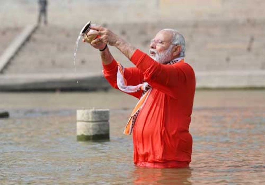 प्रधानमंत्री नरेंद्र मोदी ने काशी पहुंचते ही सबसे पहले पूजा-अर्चना के साथ काशी के आध्यात्मिक कोतवाल कालभैरव का आशीर्वाद ग्रहण किया। काशी विश्वनाथ धाम के लोकार्पण से पहले भगवा वस्त्र में माँ गंगा में डुबकी लगाई और उनका विधिविधान से अर्चन करते हुए भगवान सूर्यदेव को अर्द्धय दिया। प्रधानमंत्री उसके बाद बाबा विश्वनाथ धाम की ओर बढे़ और चरणबद्ध काशी विश्वनाथ मंदिर में बाबा की पूजा की। उन्होंने काशी विश्वनाथ धाम के पुनर्निमाण में शामिल श्रमजीवियों पर फूल बरसाए, उनके साथ फोटो खिंचवाया और फिर विश्वनाथ कॉरीडोर का उद्घाटन करते हुए कॉरीडोर में उपस्थित काशीवासियों, धर्माचार्यों, साधकों, ऋषि-मुनियों संतों और आमंत्रित अतिथियों को संबोधित किया। प्रधानमंत्री ने हर-हर महादेव के उद्घोष के साथ अपने उद्गार प्रकट किए। नरेंद्र मोदी गंगा में डुबकी लगाते हुए, माँ गंगा एवं काशीवासियों से किया अपना वादा पूरा करते हुए अपने आध्यात्मिक चरम पर दिखाई दिए। प्रधानमंत्री ने कहाकि यह हम सभी के लिए विशेष दिन है, काशी विश्वनाथ धाम के नव्य-भव्य स्वरूप के लोकार्पण से आज काशीवासियों की हजारों वर्ष की प्रतीक्षा समाप्त हुई है।