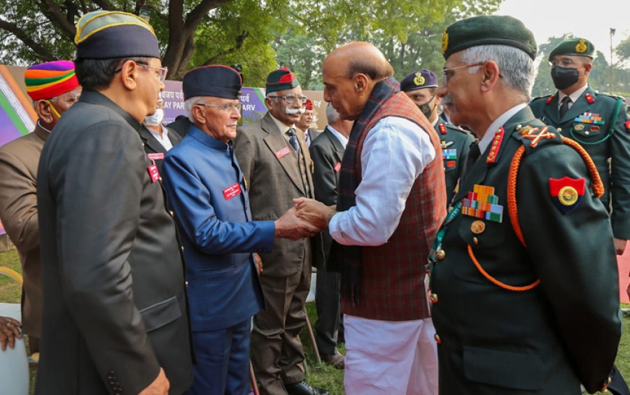 रक्षामंत्री ने कहा कि हमारा उद्देश्य सशस्त्र बलों के कर्मियों की भलाई न केवल सेवा के दौरान, बल्कि उनकी सेवानिवृत्ति केबाद भी सुनिश्चित करना है। रक्षामंत्री ने विशेषकर युवाओं का आह्वान कियाकि वे पूर्व सैनिकों के वीरतापूर्ण पदचिन्हों पर चलें और पूरी क्षमता, समर्पण केसाथ राष्ट्र निर्माण की दिशा में काम करें। राजनाथ सिंह ने हाल ही में तमिलनाडु में एक हेलीकॉप्टर दुर्घटना में अपनी जान गंवाने वाले देश के पहले चीफ ऑफ डिफेंस स्टाफ जनरल बिपिन रावत और अन्य सशस्त्र बलों के जवानों को भी श्रद्धांजलि दी। इस अवसर पर युद्ध के दौरान लड़े गए प्रमुख युद्धों के विभिन्न स्थानों से एकत्र की गई मिट्टी को रक्षामंत्री ने 1971 की युद्ध जीत की स्वर्ण जयंती मनाने केलिए मिश्रित किया। उन्होंने इसे विविधता में एकता का प्रतीक बताया, एकत्रित मिट्टी का उपयोग 1971 की युद्ध जीत को समर्पित एक प्रस्तावित स्मारक के निर्माण में किया जाएगा।