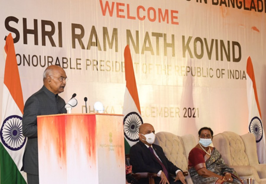 बांग्लादेश में भारतीय समुदाय की सराहना करते हुए राष्ट्रपति ने कहाकि उन्होंने विभिन्न महत्वपूर्ण क्षेत्रों में अपनी पहचान बनाई है। उन्होंने बांग्लादेश के आर्थिक और सामाजिक विकास में योगदान देने केसाथ भारत-बांग्लादेश की दीर्घकालिक घनिष्ठ द्विपक्षीय संबंधों को भी मजबूत किया है। राष्ट्रपति ने कहाकि भारतीय समुदाय हमारे क्षेत्र में समृद्धि लाकर भारत को गौरवांवित कर रहा है, हमारे देश के मूल्य और परंपराओं का भी पालन किया है, जो बांग्लादेश के साथ हमारी साझा विरासत के भी हिस्से हैं। राष्ट्रपति ने कहाकि विश्व के सभी हिस्सों में भारतीय नागरिकों की सुरक्षा, कल्याण और बेहतरी, हमारी सरकार की एक प्राथमिकता है। उन्होंने कहाकि पिछले डेढ़ वर्ष के दौरान विश्व के हर हिस्से में सरकार ने हमारे नागरिकों को कोविड-19 महामारी के सबसे बुरे दौर में घर लौटने में सक्षम बनाने के विशेष प्रयास किए हैं। उन्होंने कहाकि सरकार विदेशों में हमारे नागरिकों सहित प्रवासी भारतीयों केसाथ हमारे संबंधों को मजबूत करने केलिए सभी जरूरी कदम उठाना जारी रखेगी। राष्ट्रपति को यह जानकर प्रसन्नता हुई कि ढाका में भारतीय उच्च आयोग हमारे 'वंदे भारत मिशन' और संकट में फंसे भारतीय नागरिकों केलिए कल्याणकारी गतिविधियों में अग्रिम मोर्चे पर तैनात था।