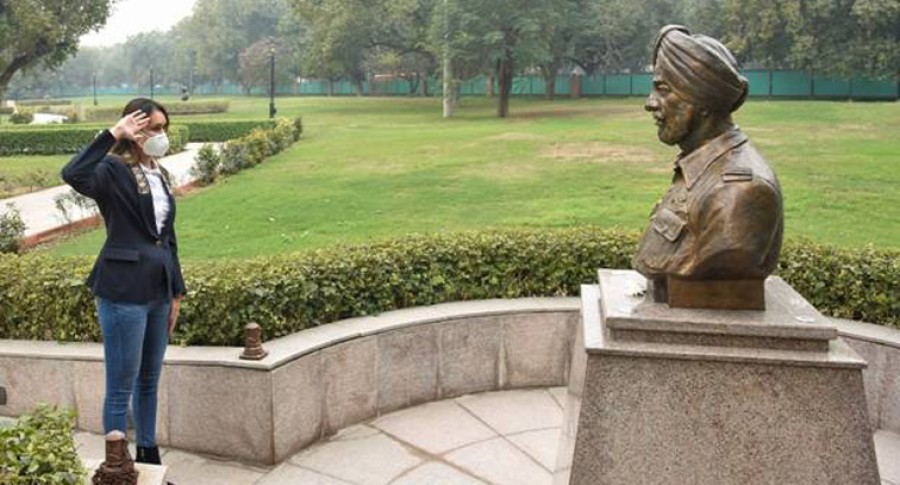 नई दिल्ली। ओलंपियन टेबल टेनिस स्टार मनिका बत्रा ने राष्ट्रीय युद्ध स्मारक पर जाकर 1971 के भारत-पाक युद्ध में वायुसेना के योद्धा निर्मल जीत सिंह सेखों को श्रद्धांजलि अर्पित की और उन्हें सलामी दी। गौरतलब हैकि निर्मल जीत सिंह सेखों ने ऐतिहासिक भारत और पाकिस्तान के बीच युद्ध के दौरान अनुकरणीय साहस और दृढ़ संकल्प का प्रदर्शन किया था। टेबल टेनिस खिलाड़ी ने स्मारक में 'परम योद्धा स्थल' नामक वीरता गैलरी देखी, जहां परमवीर चक्र से सम्मानित वायुसेना के युद्ध नायकों की प्रतिमाएं स्थापित हैं।
