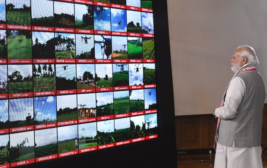नरेंद्र मोदी ने कहाकि हम देख रहे हैंकि ड्रोन का कितना विविध इस्तेमाल होने लगा है, अभी बीटिंग रिट्रीट के दौरान एक हजार ड्रोंस का शानदार प्रदर्शन पूरे देश ने देखा था। नरेंद्र मोदी ने कहाकि आज स्वामित्व योजना केतहत गांव में ड्रोन के जरिये जमीन, घरों का हिसाब-किताब तैयार हो रहा है, ड्रोन के जरिये दवाओं की सप्लाई हो रही है, मुश्किल इलाकों में वैक्सीन पहुंच रही हैं, कई जगह खेतों में दवाओं का छिड़काव भी ड्रोन से शुरू हो गया है और किसान ड्रोन अब इस दिशा में एक नए जमाने की क्रांति की शुरूआत है, उदाहरण के तौर पर आनेवाले समय में हाई कैपेसीटी ड्रोन की मदद से किसान अपने खेतों से ताजी सब्जियां, फल, फूल बाजार भेज सकते हैं, मछली पालन से जुड़े लोग तालाब, नदी और समंदर से सीधे ताजी मछलियां बाजार भेज सकते हैं। प्रधानमंत्री ने कहाकि कम समय मिनिमल डेमेज केसाथ मछुआरों, किसानों का सामान बाजार पहुंचेगा तो उनकी आय भी बढ़ेगी। उन्होंने कहाकि ऐसी अनेक संभावनाएं हमारे सामने दस्तक दे रही हैं।