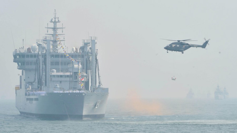 भारतीय नौसेना बेड़े की स्थैतिक निरीक्षण केतहत शानदार फ्लाईपास्ट आयोजित किया गया। युद्धपोतों और पनडुब्बियों के एक मोबाइल कॉलम ने राष्ट्रपति की नौका केसाथ हाई-स्पीड स्टीम पास्ट किया। जहाजों की परेड, समुद्र में खोज और बचाव प्रदर्शन जैसी कई रोमांचकारी वॉटरफ्रंट गतिविधियां, हॉक एयरक्राफ्ट से एरोबेटिक्स और एलीट मरीन कमांडो की वॉटर पैरा जंप ने मेहमानों को मंत्रमुग्ध कर दिया। राष्ट्रपति की नौका जैसे ही समीक्षा स्तंभों केबीच से गुजरी प्रत्येक जहाज ने पूरे राजसी सजावट जो अपने जहाज की कंपनी द्वारा संचालित होती है, उसने देश और सर्वोच्च कमांडर केप्रति बिना शर्त निष्ठा के प्रदर्शन में पारंपरिक तीन प्रतीकों (थ्री जैस) केसाथ राष्ट्रपति को सलामी दी। राष्ट्रपति ने चेतक, एएलएच, सी किंग्स, केएएमओवी, डोर्नियर्स, आईएल-38 एसडी, पी81, हॉक्स और मिग 29 के सहित 55 विमानों के समग्र फ्लाईपास्ट के करतब देखे।