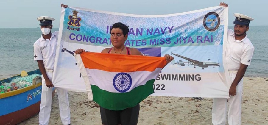 मुंबई। भारतीय नौसेना के वरिष्ठ नौसैनिक अधिकारी एवं आईएनएस कुंजली पर एमसी-एटी-एआरएमएस-II मदन राय की बेटी और नेवी चिल्ड्रन स्कूल मुंबई की छात्रा जिया राय ने पलक जलडमरूमध्य में श्रीलंका के तलाईमन्नार से भारत में धनुषकोडी तक 29 किलोमीटर की दूरी को 13 घंटे 10 मिनट में तैरकर देश का नाम रौशन किया है। ऑटिज्म स्पेक्ट्रम डिसऑर्डर से पीड़ित जिया राय ने 13 साल और 10 महीने की उम्र में यह उपलब्धि हासिल कर ली है, इसके साथही वह पलक जलडमरूमध्य में तैरने वाली दुनिया की सबसे कम उम्र की और सबसे तेज महिला तैराक बन गई है। इससे पहले यह रिकॉर्ड बुला चौधरी के नाम था, जिन्होंने 2004 में 13 घंटे 52 मिनट में दूरी तय की थी।