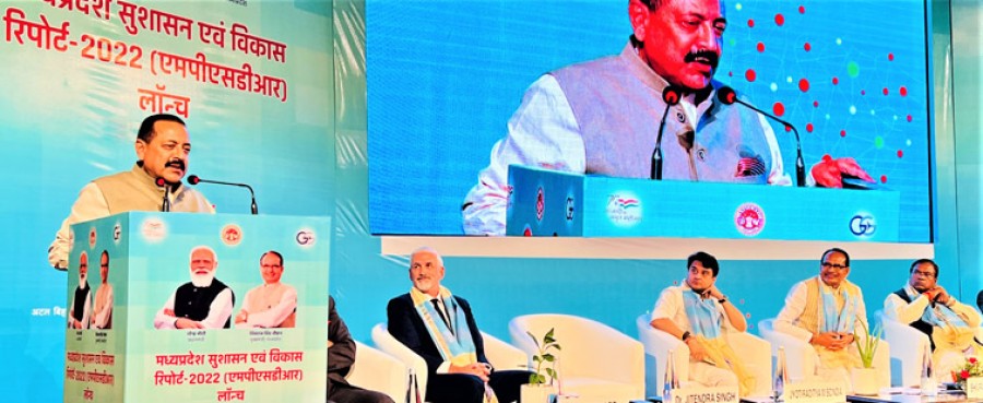 भोपाल। पीएमओ एवं केंद्रीय कार्मिक राज्यमंत्री डॉ जितेंद्र सिंह और मध्य प्रदेश के मुख्यमंत्री शिवराज सिंह चौहान ने संयुक्त रूपसे एक कार्यक्रम में 'मध्य प्रदेश सुशासन और विकास रिपोर्ट-2022' शीर्षक से राज्य शासन की रिपोर्ट का लोकार्पण किया है। एक विस्तृत रिपोर्ट लाने और केंद्रीय कार्मिक मंत्रालय में प्रशासनिक सुधार एवं लोक शिकायत विभाग केसाथ काम करने केलिए मध्य प्रदेश सरकार को बधाई देते हुए कार्मिक राज्यमंत्री डॉ जितेंद्र सिंह ने कहाकि उनका मंत्रालय प्रत्येक राज्य सरकारों को सर्वोत्तम कार्यप्रणाली अपनाने केलिए प्रेरित कर रहा है। उन्होंने मध्य प्रदेश को बीमारू राज्य होने के संदेहपूर्ण कलंक से हटाकर अत्यधिक प्रगतिशील राज्य बनाने केलिए मध्य प्रदेश के मुख्यमंत्री शिवराज सिंह चौहान की सराहना की, जो कृषि सूचकांक जैसी अनेक तालिकाओं के मामले में देश के अधिकांश अन्य राज्यों से आगे निकल चुका है।