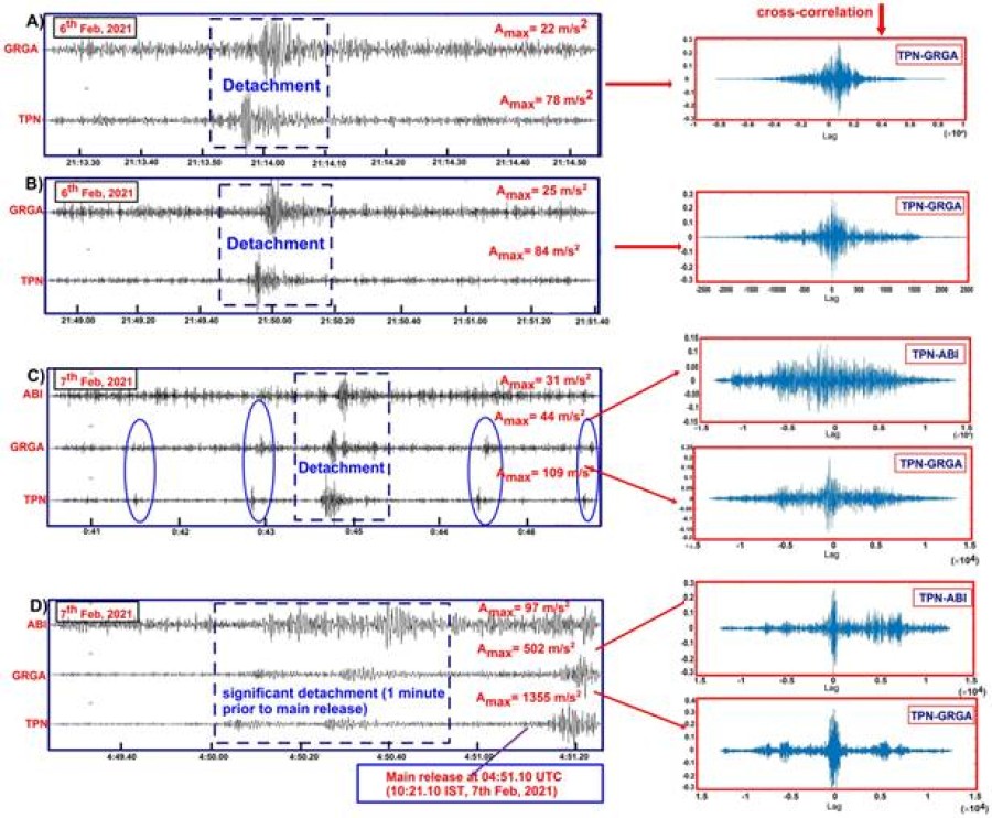 वाडिया इंस्टीट्यूट ऑफ हिमालयन जियोलॉजी अपनी स्थापना केबाद से इस तरह की आपदा के पीछे जिम्मेदार प्रक्रिया को समझने में सक्रिय रूपसे लगा है और हिमालय के ग्लेशियरों के आसपास भूकंपीय स्टेशनों के घने नेटवर्क केसाथ महत्वपूर्ण और अनपेक्षित गतिविधियों का पता लगाने पर ध्यान केंद्रित कर रहा है। इस प्रक्रिया केतहत उन्होंने 7 फरवरी 2021 को हुई आपदा के पीछे के कारणों का पता लगाने की भी कोशिश की है। नौ वैज्ञानिकों के समूह ने हिमस्खलन क्षेत्र की उपग्रह छवियों का विश्लेषण किया और पायाकि यह पिछले 5 वर्ष से खड़ी ढाल के निशान को नियंत्रित करने वाले कमजोर कील (पच्चड़) के शिखर के पास दरारें और जोड़ की क्रमिक वृद्धि को दिखाता है, ये दरारें आगे खुलने लगीं और पच्चड़ की विफलता से शिखर के पास एक कमजोर क्षेत्र की क्रमिक उन्नति हुई। बड़ी संख्या में आइस-रॉक हिमस्खलन की शुरुआत को भूकंपीय पूर्ववर्ती के रूपमें दर्ज किया गया, जो मुख्य पृथकता के होने से 2.30 घंटे पहले तक लगातार सक्रिय थे।