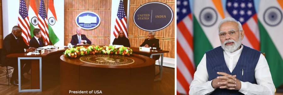 नई दिल्ली। रूस और यूक्रेन के बीच भयंकर युद्ध चलने और इस युद्ध में भारत की तटस्थता एवं दोनों ओर से युद्ध रोकने एवं वार्ता करने के हर संभव प्रयासों के दौरान प्रधानमंत्री नरेंद्र मोदी और अमेरिका के राष्ट्रपति जोसेफ आर बाइडेन में वर्चुअल बैठक हुई है। बैठक में रूस और यूक्रेन युद्ध पर बातचीत के साथ दोनों ओर से कहा गया हैकि भारत-यूएस वैश्विक रणनीतिक साझेदारी को और ज्यादा मजबूत एवं विश्वसनीय बनाने केलिए काम करेंगे। भारत-अमेरिका 2+2 मंत्रिस्तरीय वार्ता केलिए भारत के विदेशमंत्री डॉ एस जयशंकर और रक्षामंत्री राजनाथ सिंह भी इस वार्तालाप में वाशिंगटन डीसी में व्हाइट हाउस में अपने अमेरिकी समकक्षों विदेशमंत्री एंटनी ब्लिंकन और रक्षामंत्री लॉयड ऑस्टिन केसाथ पहलेसे मौजूद थे। दोनों राजनेताओं ने क्षेत्रीय और वैश्विक मुद्दों जैसे-कोविड-19 महामारी, वैश्विक आर्थिक सुधार, जलवायु कार्रवाई, दक्षिण एशिया और भारत-प्रशांत क्षेत्र में हालिया घटनाक्रम पर भी विचारों का व्यापक आदान-प्रदान किया। बैठक में हालके वर्षों में द्विपक्षीय संबंधों में हुई महत्वपूर्ण प्रगति की समीक्षा की गई।
