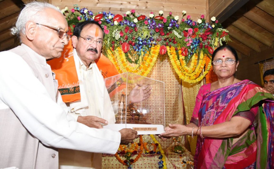 अयोध्या। उपराष्ट्रपति एम वेंकैया नायडु पत्नी उषा नायडु केसाथ ऐतिहासिक नगरी अयोध्या में श्रीराम जन्मभूमि में भगवान श्रीराम के दर्शन किए और प्रसिद्ध संकटमोचक हनुमान गढ़ी मंदिर में पूजा-अर्चना की। उपराष्ट्रपति ने श्रीराम जन्मभूमि स्थल का दौरा किया। उपराष्ट्रपति के सम्मुख श्रीराम जन्मभूमि तीर्थ ट्रस्ट के सदस्यों ने श्रीराम मंदिर के 3-डी मॉडल को प्रदर्शित करने वाली एक लघु फिल्म के माध्यम से विस्तृत प्रस्तुति भी दी, इसके बाद उपराष्ट्रपति ने निर्माणाधीन श्रीराम मंदिर के गर्भगृह स्थल पर पूजा-अर्चना की। श्रीराम जन्मभूमि की दर्शक पुस्तिका में उन्होंने लिखाकि श्रीराम जन्मभूमि का दर्शन करके धन्य हो गया, भगवान श्रीराम हमारी संस्कृति, मूल्यों और गौरवशाली इतिहास के प्रतीक हैं। उन्होंने लिखाकि मर्यादा पुरुषोत्तम के जीवन से भारतीयों को हमेशा प्रेरणा मिली है, उनको सच्चा मार्गदर्शन मिला है, अयोध्या में भव्य श्रीराम मंदिर का पुनर्निर्माण भारत में आध्यात्मिक पुनर्जागरण है और विश्वास हैकि यह मंदिर आने वाली पीढ़ियों को हमारी समृद्ध सांस्कृतिक विरासत का सम्मान करने और उन्हें सच्चाई, न्याय तथा भाईचारे का मार्ग दिखाने केलिए प्रेरित करता रहेगा।