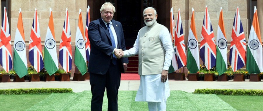 प्रधानमंत्री नरेंद्र मोदी ने कहाकि जब भारत अपनी आज़ादी का अमृत महोत्सव मना रहा है, तब ब्रिटेन के प्रधानमंत्री का भारत आना अपने आपमें एक ऐतिहासिक पल है और कलतो पूरे भारत ने देखा हैकि उन्होंने अपनी भारत यात्रा का शुभारंभ ही साबरमती आश्रम में महात्मा गांधी को श्रद्धासुमन अर्पित करके किया। नरेंद्र मोदी ने कहाकि पिछले साल दोनों देशों में व्यापक रणनीतिक साझेदारी की स्थापना हुई थी और अपने संबंधों को दिशा देने केलिए हमने एक महत्वाकांक्षी रोडमैप 2030 भी लॉंच किया था। उन्होंने कहाकि आजकी हमारी बातचीतमें हमने इस रोडमैप में हुई प्रगति की समीक्षा की और आगामी समय केलिए कुछ लक्ष्य भी तय किए हैं। नरेंद्र मोदी ने कहाकि निःशुल्क व्यापार समझौता विषय पर दोनों देशों की टीम्स काम कर रही हैं, हमने इस साल के अंततक एफटीए के समापन की दिशामें पूरा प्रयास करने का निर्णय लिया है। उन्होंने कहाकि कुछ महीने में भारत ने यूएई और ऑस्ट्रेलिया केसाथ मुक्त व्यापार समझौतों का समापन किया है, उसी गति एवं प्रतिबद्धता केसाथ हम यूके केसाथ भी एफटीए पर आगे बढ़ना चाहेंगे।
