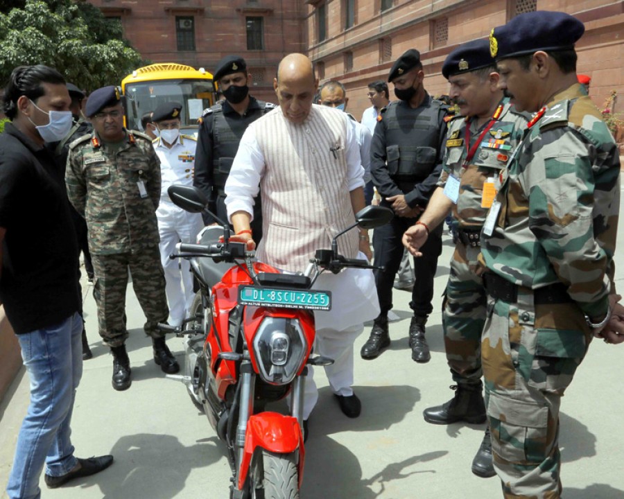 नई दिल्ली। रक्षामंत्री राजनाथ सिंह, सेना प्रमुख और भारतीय सेना के वरिष्ठ अधिकारियों के समक्ष इलेक्ट्रिक वाहनों का प्रदर्शन किया गया। टाटा मोटर्स, परफेक्ट मेटल इंडस्ट्रीज (पीएमआई) तथा रिवोल्ट मोटर्स के इलेक्ट्रिक वाहन विनिर्माताओं ने अपने इलेक्ट्रिक वाहन प्रदर्शित किए तथा पिछले कुछ वर्ष केदौरान अर्जित प्रौद्योगिकी तथा प्रचालन केदायरे में वृद्धि के बारेमें जानकारी दी। रक्षामंत्री ने इलेक्ट्रिक वाहनों को सेना में शामिल करने और सरकार की नीतियों के अनुरूप जीवाश्म ईंधन पर निर्भरता घटाने की भारतीय सेना की पहल की सराहना की।