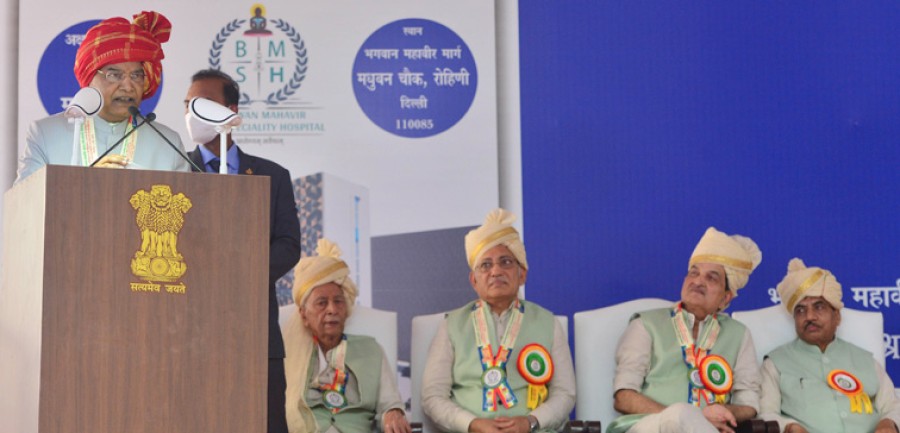 नई दिल्ली। राष्ट्रपति रामनाथ कोविंद ने दिल्ली में भगवान महावीर सुपर स्पेशियलिटी अस्पताल का शिलान्यास किया और कहाकि जैन परंपरा में सेवा को प्राथमिकता दी गई है। उन्होंने कहाकि वर्ष 2023 तक 250 बिस्तरों वाला एक अत्याधुनिक भगवान महावीर सुपर स्पेशियलिटी अस्पताल बनकर तैयार हो जाएगा। उन्होंने कहाकि यह खुशी कीबात हैकि इस सुपर स्पेशियलिटी अस्पताल में समाज के सभी वर्गों को उच्च गुणवत्ता वाली स्वास्थ्य सेवाएं किफायती दरों पर और गरीबों को निःशुल्क उपलब्ध कराई जाएंगी। उन्होंने कहाकि यह जानकर प्रसन्नता हुईकि महामारी के दौरान इस अस्पताल ने कोविड केयर अस्पताल के रूपमें भी अपनी सेवाएं प्रदान की हैं। उन्होंने सचेत किया कि कोविड अभी पूरी तरह से खत्म नहीं हुआ है, सभी नागरिकों से सतर्क रहने और सरकार के सभी दिशा-निर्देशों का पालन करने की अपील की है।