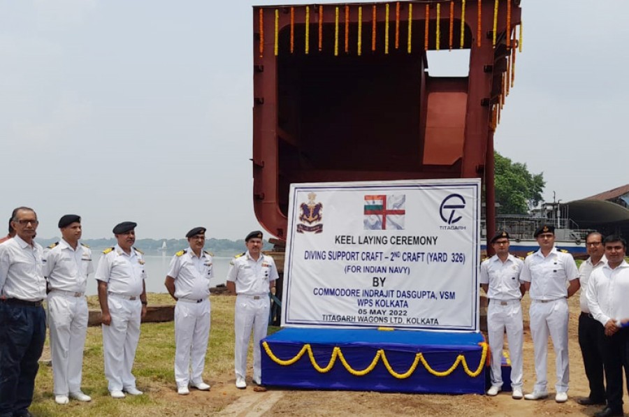 कोलकाता। गोताखोरी सहायता नौका श्रेणी की परियोजना के दूसरे पोत के निर्माण का कल कोलकाता में औपचारिक उद्घाटन हुआ। मेसर्स टीटागढ़ वैगंस लिमिटेड केसाथ 12 फरवरी 2021 को 174.77 करोड़ रुपये की लागत से भारतीय नौसेना का पांच गोताखोरी सहायता नौकाओं (यार्ड 325 से 329) केलिए 12 फरवरी 2021 को खरीद का अनुबंध हुआ था। ये नौकाएं कार्यांवित होने केबाद समुद्र में मरम्मत, रख-रखाव और बचाव कार्यों केलिए बंदरगाह के आस-पास तथा भारतीय नौसेना जहाजों केलिए गोताखोरी में सहायता प्रदान करेंगी।