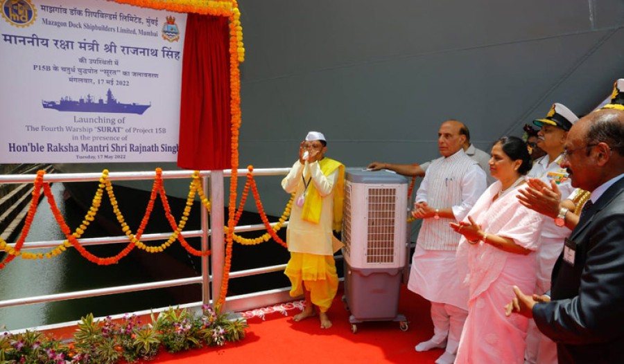 मुंबई। रक्षामंत्री राजनाथ सिंह ने आज मझगांव डॉक्स लिमिटेड मुंबई में भारतीय नौसेना के दो फ्रंटलाइन युद्धपोतों-आईएनएस सूरत गाइडेड मिसाइल डिस्ट्रॉयर और आईएनएस उदयगिरी स्टील्थ फ्रिगेट का समारोहपूर्वक जलावतरण कर दिया है। नौसेना परंपराओं को ध्यान में रखते हुए अध्यक्ष एनडब्ल्यूडब्ल्यूए (पश्चिमी क्षेत्र) चारू सिंह और सीएमडी एमडीएल की पत्नी जयश्री प्रसाद ने क्रमशः 'सूरत' और 'उदयगिरी' जहाजों को आशीर्वाद और नाम दिया। समारोह में नौसेना प्रमुख एडमिरल आर हरिकुमार एवं भारतीय नौसेना और रक्षा मंत्रालय के वरिष्ठ अधिकारी भी उपस्थित थे। गौरतलब हैकि सूरत पी15बी श्रेणी का चौथा निर्देशित मिसाइल विध्वंसक है, जबकि उदयगिरी पी17ए श्रेणी का दूसरा स्टील्थ फ्रिगेट है। दोनों युद्धपोतों को नौसेना डिजाइन निदेशालय ने इन-हाउस डिजाइन किया है और एमडीएल मुंबई में बनाया गया है।