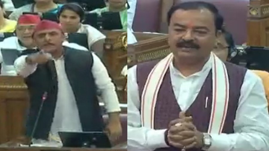 विधानसभा में नेता प्रतिपक्ष अखिलेश यादव और उपमुख्यमंत्री केशव प्रसाद मौर्य केबीच तीखी तकरार उस वक्त सदन की गरिमा से बाहर चली गई, जब अखिलेश यादव राज्यपाल के अभिभाषण पर सरकार के धन्यवाद प्रस्ताव पर उनकी ओर देखकर अपने मुख्यमंत्रित्वकाल में बड़े-बड़े विकास कार्यों और सड़कों आदि के निमार्ण को अपनी ही उपलब्धियां बताकर उपमुख्यमंत्री केशव प्रसाद मौर्य की हार पर तंज कसने लगे। केशव प्रसाद मौर्य ने इसपर पलटकर कहाकि न जाने आपको कौन सा रोग हैकि आप हमेशा सारे कार्य अपनी सरकार के बताते हैं और अपना गुणगान करते हैं। केशव प्रसाद मौर्य ने कहाकि आप फिर पांच साल केलिए बाहर हुए हैं और आगे भी आपका नंबर नहीं लगना है, योगी आदित्यनाथ दोबारा मुख्यमंत्री बने और मै फिर उपमुख्यमंत्री की कुर्सी पर बैठा हूं। अखिलेश यादव ने पलटकर जवाब दिया कि आपके जिले की चार लेन की सड़क भी सपा सरकार ने ही बनवाई थी, इसपर केशव मौर्य ने पलटवार किया कि जैसे आपने सैफई की जमीन बेचकर सड़कें बनवाई हों। अखिलेश यादव इसपर तैश में आ गए और अभद्रता से आपा खोते हुए कहने लगे कि तुम अपने पिताजी से सड़क बनवाने केलिए पैसे लाते हो, तुमने राशन पिताजी के पैसे से बांटा?..