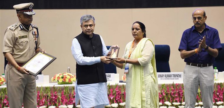 नई दिल्ली। रेलमंत्री अश्विनी वैष्णव ने एक भव्य अलंकरण समारोह में वर्ष 2019, 2020 और 2021 केलिए राष्ट्रपति द्वारा वीरता केलिए राष्ट्रपति पदक, सराहनीय सेवा केलिए पुलिस पदक, विशिष्ट सेवा केलिए राष्ट्रपति पुलिस पदक और जीवन रक्षा पदक श्रृंखला से सम्मानित 104 आरपीएफ कर्मियों का सम्मान किया है। समारोह में एक मार्मिक क्षण भी आया, जब जगबीर सिंह की पत्नी सुनीता देवी रेल मंत्री से सम्मान प्राप्त करने केलिए मंच तक गईं, उनके पति जगबीर सिंह ने आदर्शनगर-आजादपुर रेल खंड, दिल्ली केबीच रेलवे ट्रैक पर 4 बच्चों की जान बचाते हुए ड्यूटी पर अपने प्राणों की आहुति दे दी थी। बेजोड़ वीरता का परिचय देते हुए उन्होंने अपने कर्तव्य से आगे बढ़कर अपनी जान की परवाह किए बिना इन बच्चों की जान बचाई थी। उनके बलिदान केलिए उन्हें मरणोपरांत वीरता का राष्ट्रपति पुलिस पदक और जीवन रक्षा पदक से सम्मानित किया गया है।