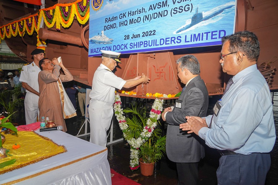 मुंबई। भारतीय नौसेना के प्रतिष्ठित पी17ए के सातवें जहाज वाई-12654 के निर्माण की नींव मेसर्स मझगांव डॉक शिपबिल्डर्स लिमिटेड मुंबई में नौसेना डिजाइन (सरफेस शिप ग्रुप) के महानिदेशक रियर एडमिरल जीके हरीश ने औपचारिक रूपसे रखी। यह समारोह भारतीय नौसेना और एमडीएल के वरिष्ठ अधिकारियों की उपस्थिति में किया गया। जहाजों के निर्माण में इस तरह नींव रखना एक प्रमुख गतिविधि है, जो बिल्डिंग बर्थ पर युद्धपोतों की निर्माण प्रक्रिया की औपचारिक शुरुआत का प्रतीक है। पी17ए श्रेणी केतहत सात युद्धपोतों का निर्माण किया जा रहा है, जिनमें से चार एमडीएल में और तीन एमडीएल केसाथ लीडयार्ड के रूपमें जीआरएसई में बनाए जा रहे हैं।