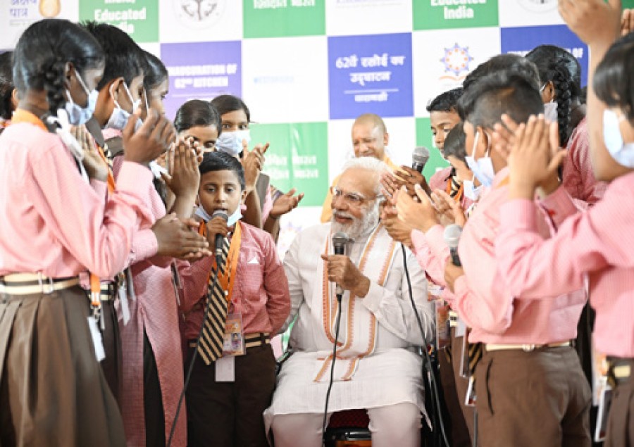 प्रधानमंत्री ने कहाकि स्पेस टेक्नोलॉजी जैसे क्षेत्रों में जहां पहले केवल सरकार ही सब करती थी, वहां अब प्राइवेट प्लेयर्स के जरिए युवाओं केलिए नई दुनिया बन रही है, देश की बेटियों, महिलाओं केलिए भी जो क्षेत्र पहले बंद हुआ करते थे, आज वो सेक्टर बेटियों की प्रतिभा के उदाहरण प्रस्तुत कर रहे हैं। प्रधानमंत्री ने प्रकाश डालाकि नई शिक्षा नीति में बच्चों को उनकी प्रतिभा और उनकी पसंद के अनुसार कुशल बनाने पर पूरा ध्यान दिया गया है। उन्होंने कहाकि हमारे युवा स्किल्ड, कॉन्फिडेंट, प्रैक्टिकल और कैलकुलेटिव हों शिक्षा नीति इसके लिए जमीन तैयार कर रही है। प्रधानमंत्री ने एक नई विचार प्रक्रिया केसाथ भविष्य केलिए काम करने की आवश्यकता पर बल दिया। उन्होंने कहाकि बच्चे बहुत उन्नत स्तर की प्रतिभा प्रदर्शित कर रहे हैं और हमें उनकी प्रतिभा की मदद करने केसाथ ही उनका लाभ उठाने केलिए तैयार रहने की जरूरत है।