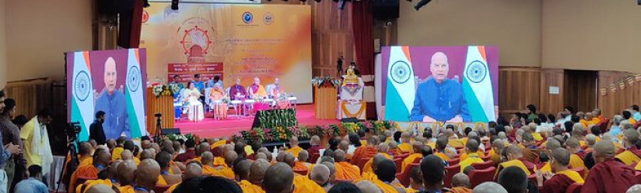 रामनाथ कोविंद ने कहाकि भारत में विद्यमान विश्व के प्राचीनतम गणराज्यों में लोगों को शिक्षा देनेवाले भगवान बुद्ध की स्मृति में निर्मित सांची स्तूप की बनावट राष्ट्रपति भवन की पहचान है, क्योंकि राष्ट्रपति भवन के गुंबद की बनावट सांची स्तूप पर ही आधारित है, आधुनिक युग मेंभी राष्ट्रपति भवन विश्व के सबसे बड़े लोकतंत्र भारत का सबसे महत्वपूर्ण भवन है। उन्होंने कहाकि जिस पीपल के पेड़ के नीचे समाधिस्थ होकर सिद्धार्थ गौतम ने बुद्धत्व प्राप्त किया था, उसका एक छोटा सा पौधा मंगवाकर नवंबर 2017 में राष्ट्रपति भवन के एक बगीचे में मैंने लगाया था, आज वह पौधा लगभग साढ़े सात फुट ऊंचा हो गया है, उसके बाद सन 2021 में राष्ट्रपति भवन परिसर के एक उद्यान में उसी पीपल का एक और पौधा लगाया, ये पौधे भगवान बुद्ध की विरासत केसाथ जीवंत संबंध के रूपमें राष्ट्रपति भवन में विद्यमान रहेंगे। रामनाथ कोविंद ने कहाकि राष्ट्रपति भवन के सबसे प्रमुख कक्ष अर्थात दरबार हॉल में राष्ट्रपति की कुर्सी के पीछे भगवान बुद्ध की लगभग पंद्रह सौ साल पुरानी एक मूर्ति रखी गई है, यह मूर्ति गुप्तकाल के दौरान प्रचलित भारतीय-यूनानी मूर्तिकला का सुंदर उदाहरण है।