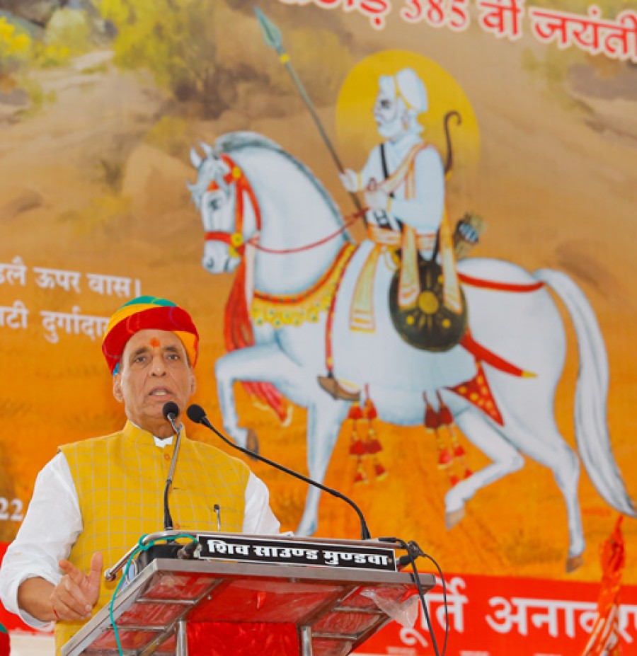 जोधपुर। रक्षामंत्री राजनाथ सिंह ने जोधपुर में प्रसिद्ध मारवाड़ी योद्धा वीर दुर्गादास राठौर की प्रतिमा का अनावरण किया और वीर दुर्गादास राठौर को भावभीनी श्रद्धांजलि अर्पित करते हुए उन्हें सामाजिक सद्भाव, ईमानदारी, बहादुरी और भक्ति का प्रतीक बताया। रक्षामंत्री ने कहाकि जाति या धर्म के बावजूद लोगों को वीर दुर्गादास राठौर से प्रेरणा लेनी चाहिए, जिन्होंने समाज में विभाजनकारी तत्वों के खिलाफ शांति और सद्भाव केलिए प्रयास किया। रक्षामंत्री ने इस अवसर पर यह भी कहाकि नरेंद्र मोदी सरकार ने देशमें एक फुलप्रूफ सुरक्षा तंत्र बनाया हैकि कोईभी भारत विरोधी तत्व देश की संप्रभुता, एकता और अखंडता पर बुरी नज़र न डाले।