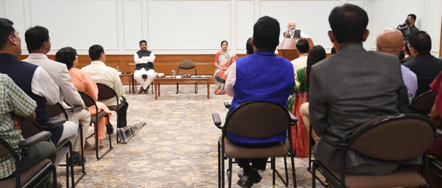 प्रधानमंत्री नरेंद्र मोदी के साथ सम्मानित शिक्षकों ने की बातचीत