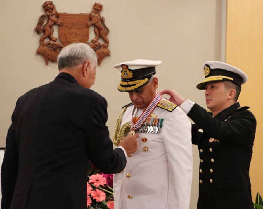 सिंगापुर। सिंगापुर गणराज्य की राष्ट्रपति मैडम हलीमा याकूब ने भारतीय नौसेना के पूर्व चीफ ऑफ नेवल स्टाफ एडमिरल सुनील लांबा (सेवानिवृत्त) को प्रतिष्ठित पिंगट जसा जेमिलंग (टेंटेरा) यानी मेधावी सेवा पदक (सेना) से सम्मानित किया। सिंगापुर के रक्षामंत्री डॉ एनजी इंग हेन ने सिंगापुर रक्षा मंत्रालय में एक भव्य अलंकरण समारोह में राष्ट्रपति की ओरसे एडमिरल सुनील लांबा (सेवानिवृत्त) को सम्मानित किया। यह सम्मान भारत और सिंगापुर केबीच मजबूत द्विपक्षीय रक्षा संबंधों के साथ-साथ दोनों नौसेनाओं केबीच जुड़ाव को मजबूत करने केलिए एडमिन सुनील लांबा के शानदार योगदान को पहचान प्रदान करता है। नौसेना प्रमुख के रूपमें उनके कार्यकाल के दौरान भारतीय नौसेना ने अक्टूबर 2018 में विशाखापत्तनम में सिंगापुर-भारत समुद्री द्विपक्षीय अभ्यास (सिम्बैक्स) के 25वें संस्करण की मेजबानी की थी।