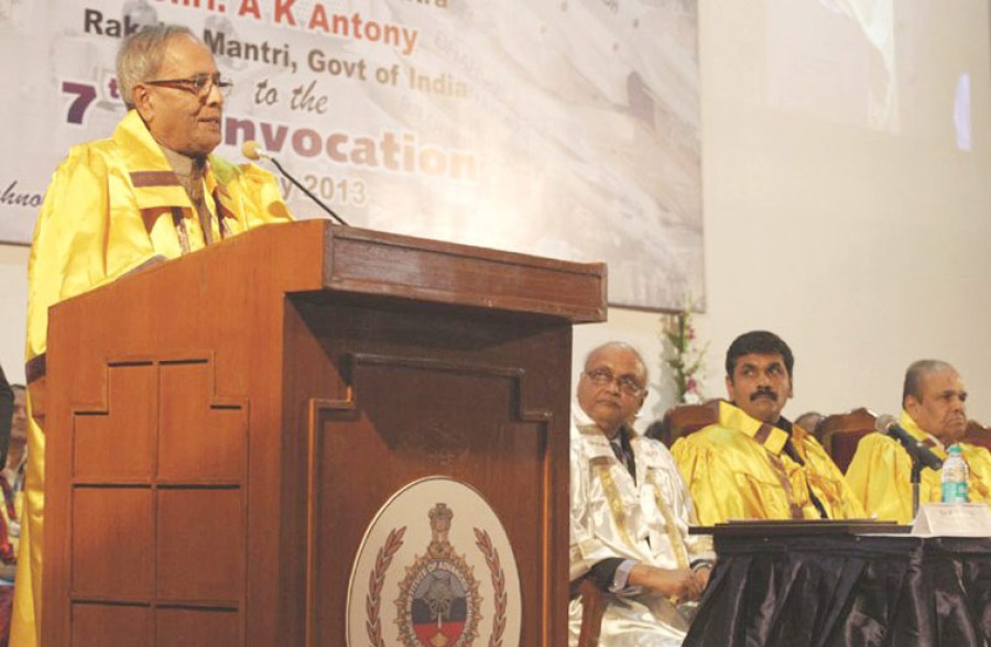 प्रणब मुखर्जी ने कहा कि हमारे देश में संस्थाओं का पूल होना चाहिए, जो हमारी रक्षा प्रणाली की प्रौद्योगिकीय क्षमता बढ़ाने तथा रक्षा एवं सुरक्षा के मुद्दों पर ज्ञान का विस्तार करने के लिए समर्पित हो। उन्होंने कहा कि हमारे रक्षा प्रतिष्ठान की जरूरतें पूरी करने के लिए अत्याधुनिक ज्ञान सृजित करने में विशिष्ट रक्षा अनुसंधान एवं प्रौद्योगिकी विश्वविद्यालय के रूप में उन्नत रक्षा प्रौद्योगिकी संस्थान की महत्वपूर्ण भूमिका है।