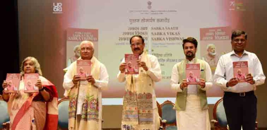 वेंकैया नायडु ने कहाकि अच्छी योजनाएं पहले भी शुरू की गई हैं, लेकिन केवल प्रधानमंत्री नरेंद्र मोदी नेतृत्व करते हुए यह सुनिश्चित कर रहे हैंकि सभी कार्यक्रम निर्धारित समयसीमा और लक्ष्यों का पालन करें, वे स्वयं कमान संभाले हैं और निरंतर निगरानी एवं संभावित वितरण सुनिश्चित करते हैं। वेंकैया नायडु ने कहाकि अपने असाधारण संवाद कौशल के कारण प्रधानमंत्री नरेंद्र मोदी देशके सभी लोगों से समान रूपसे जुड़ते हैं। उन्होंने उस समय को याद किया जब करोड़ों बैंक खाते खोलने के सपने का पूरा होना कठिन लगता था, लेकिन उनके कुशल नेतृत्व में इस लक्ष्य को बहुत जल्दही प्राप्त कर लिया गया। उन्होंने प्रत्यक्ष लाभ हस्तांतरण को सरकार की सबसे बड़ी उपलब्धि बताया। वेंकैया नायडु ने कहाकि इसने लोगों को बिचौलियों की बेड़ियों से मुक्त कराया और कल्याणकारी उपायों की अंतिम छोर तक पहुंच सुनिश्चित की। उन्होंने कहाकि पहले की योजनाओं को या तो सरकार या राजनीतिक के रूपमें पहचाना जाता था, लेकिन प्रधानमंत्री नरेंद्र मोदी इस बात को समझ गए थेकि एक लक्ष्य की प्राप्ति लोगों की भागीदारी पर निर्भर करती है, इसी तरह उन्होंने स्वच्छ भारत अभियान की परिकल्पना एक जनआंदोलन के रूपमें की थी। प्रकाशन विभाग निदेशालय ने विमोचन कार्यक्रम का आयोजन किया था।