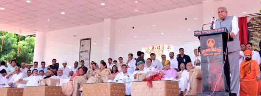 उपराष्ट्रपति ने गुरु जंभेश्वर की रचित शब्द वाणी तथा बिश्नोई समाज के 29 धर्म नियमों को भारतीय सांस्कृतिक विरासत का निचोड़ बताया और कहाकि इनके अनुपालन से जीवनशैली और समाज सदैव सही रास्ते पर रहेंगे। बिश्नोई समाज के प्रकृति संरक्षण के कार्यों की प्रशंसा करते हुए उन्होंने कहाकि बिश्नोई समाज की जो बलिदानी गौरवशाली परंपरा है, उसको दुनिया के सामने रखा जाए, ताकि दूसरे लोग भी उनसे कुछ सीख सके। उपराष्ट्रपति ने कहाकि राजस्थान की इस गौरवशाली परंपरा में गुरु जंभेश्वर उज्जवल नक्षत्र के समान है। उपराष्ट्रपति देशनोक में प्रसिद्ध करणी माता मंदिर में पूजा की। मुकाम में हुए समारोह में राजस्थान का संत समाज, अखिल भारतीय बिश्नोई महासभा के संरक्षक चौधरी कुलदीप सिंह बिश्नोई, अखिल भारतीय बिश्नोई महासभा के अध्यक्ष देवेंद्र बुड़ियां, केंद्रीय जलशक्ति मंत्री गजेंद्र सिंह शेखावत, केंद्रीय मंत्री और बीकानेर सांसद अर्जुनराम मेघवाल, केंद्रीय मंत्री कैलाश चौधरी, राजस्थान सरकार में मंत्री सुखाराम विश्नोई, राज्यसभा सांसद राजेंद्र गहलोत, राजस्थान उच्च न्यायालय के न्यायमूर्ति विजय बिश्नोई, उपनेता प्रतिपक्ष राजस्थान विधानसभा राजेंद्र राठौड़ और गणमान्य नागरिक उपस्थित थे।