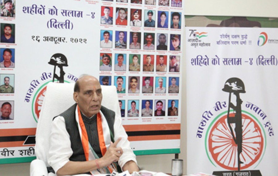 रक्षामंत्री ने कहाकि सशस्त्रबलों को स्वदेशी अत्याधुनिक हथियारों एवं उपकरणों से लैस करके देश के सुरक्षा तंत्र को मजबूत करना सरकार की सर्वोच्च प्राथमिकता है। उन्होंने कहाकि रक्षा क्षेत्रमें जल्दही पूर्ण आत्मनिर्भरता हासिल करने केलिए 'मेड इन इंडिया' युद्धपोत और अन्य उपकरणों को शामिल करना हमारे संकल्प को दर्शाता है। उन्होंने कहाकि सीमाओं पर कड़ी निगरानी रखी जा रही है और राष्ट्र सभी तरह की चुनौतियों से निपटने केलिए तैयार है। उन्होंने कहाकि भारत एक शांतिप्रिय राष्ट्र है, जिसने कभी किसी देशको नुकसान पहुंचाने की कोशिश नहीं की है, लेकिन अगर देशमें शांति एवं सद्भाव को बिगाड़ने का कोई प्रयास किया जाता है तो उसका मुंहतोड़ जवाब दिया जाएगा। कार्यक्रम का आयोजन सशस्त्रबलों के जवानों और स्वतंत्रता सेनानियों की वीरता एवं बलिदान को सम्मानित करने केलिए किया गया था। मारुति वीर जवान ट्रस्ट के प्रतिनिधियों के साथ-साथ शहीद वीरों के परिवार भी वर्चुअल माध्यम कार्यक्रम में शामिल हुए।