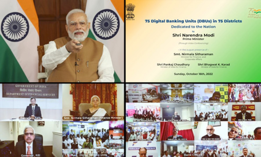 नई दिल्ली। प्रधानमंत्री नरेंद्र मोदी ने वीडियो कॉंफ्रेंसिंग के जरिए देशके 75 जिलों में 75 डिजिटल बैंकिंग इकाइयां राष्ट्र को समर्पित कीं। प्रधानमंत्री ने इस अवसर पर कहाकि 75 डिजिटल बैंकिंग इकाइयां वित्तीय समावेशन को बढ़ावा देंगी और नागरिकों को बेहतर बैंकिंग सेवा का अनुभव भी कराएंगी। उन्होंने कहाकि ये एक ऐसी विशेष बैंकिंग व्यवस्था है, जो न्यूनतम डिजिटल इंफ्रास्ट्रक्चर से अधिकतम सेवाएं देने का काम करेगी, ये सेवाएं कागजी लिखापढ़ी और झंझटों से मुक्त होंगी और पहले से कहीं ज्यादा आसान होंगी, यानी इनमें सुविधा होगी और एक मजबूत डिजिटल बैंकिंग सुरक्षा भी होगी। उन्होंने कहाकि छोटे शहरों और गांवों में रहनेवाले लोगों को धन हस्तांतरित करने से लेकर ऋण प्राप्त करने जैसे लाभ मिलेंगे। उन्होंने कहाकि भारत के सामान्य लोगों के जीवन को आसान बनाने का जो अभियान देशमें चल रहा है, डिजिटल बैंकिंग यूनिट्स उस दिशामें एक और बड़ा कदम है।