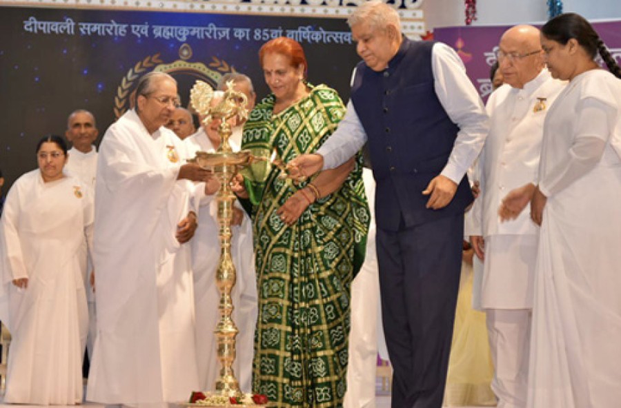 उपराष्ट्रपति ने कहाकि भारत विभिन्न क्षेत्रोंमें अभूतपूर्व व तेजीसे बढ़ रहा है और उन्होंने मीडिया से आग्रह कियाकि वो भारत की इस प्रगति का उत्सव मनाए और इसे रेखांकित करे। उच्च सदन के रूपमें राज्यसभा की भूमिका का उल्लेख करते हुए उन्होंने कहाकि हमारे संविधान निर्माताओं ने कल्पना की थीकि राज्यसभा अपने आचरण और दूरदर्शिता से देशको एक नई दिशा प्रदान करेगी। उन्होंने सांसदों से ऐसे निजी और सामूहिक आचरण का प्रदर्शन करते हुए आमजनता केलिए मिसाल कायम करने का आग्रह किया, जिसका अनुकरण आम जनता कर सके। इस आयोजन केबाद उपराष्ट्रपति ने डॉ सुदेश धनखड़ केसाथ राजस्थान के दिलवाड़ा मंदिरों और नाथद्वारा मंदिरों का भी दौरा किया। राजस्थान सरकार के वन और पर्यावरण राज्यमंत्री सुखराम बिश्नोई, ब्रह्माकुमारी की अतिरिक्त प्रमुख राजयोगिनी बीके जयन बहन, ब्रह्माकुमारी के अतिरिक्त महासचिव राजयोगी बीके बृजमोहन, ब्रह्माकुमारी की संयुक्त प्रमुख राजयोगिनी डॉ बीके मुन्नी बहन, ब्रह्माकुमारी के कार्यकारी सचिव राजयोगी डॉ बीके मृत्युंजय, ब्रह्माकुमारी के मल्टीमीडिया प्रमुख राजयोगी बीके करुणा और गणमान्य अतिथियों ने कार्यक्रम में हिस्सा लिया।