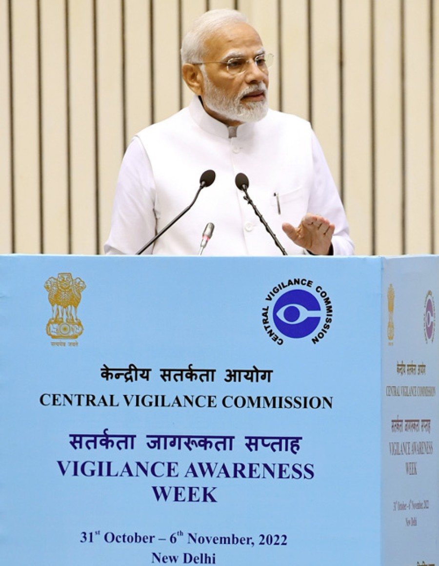 प्रधानमंत्री नरेंद्र मोदी ने कहाकि स्वच्छता का महत्व तभी समझ में आता है, जब गंदगी खत्म हो जाए। भ्रष्टाचार केखिलाफ इस लड़ाई में जितना संभव हो सके प्रौद्योगिकी को अपनाने की आवश्यकता पर बल देते हुए प्रधानमंत्री ने कहाकि कानून के दायरे से बाहर काम करने वालों पर नज़र रखने की बात आती है तो प्रौद्योगिकी निश्चित रूपसे एक कागजी कार्रवाई से जुड़ी कमियों को पीछे छोड़ रही है। इस अवसर पर प्रधान सचिव डॉ पीके मिश्रा, कार्मिक एवं संसदीय कार्य राज्यमंत्री डॉ जितेंद्र सिंह, कैबिनेट सचिव, केंद्रीय सतर्कता आयुक्त सुरेश एन पटेल और सतर्कता आयुक्त पीके श्रीवास्तव और अरविंद कुमार उपस्थित थे। प्रधानमंत्री नरेंद्र मोदी ने नैतिकता और अच्छे व्यवहार पर सचित्र पुस्तिकाओं की एक श्रृंखला, निवारक सतर्कता पर सर्वोत्तम प्रथाओं का संकलन और सार्वजनिक खरीद पर एक विशेष अंक विजआई वाणी का भी विमोचन किया। गौरतलब हैकि जीवन केसभी क्षेत्रोंमें सत्यनिष्ठा का संदेश फैलाने केलिए हितधारकों को एकसाथ लाने केलिए सीवीसी हर साल सतर्कता जागरुकता सप्ताह मनाता है। इस वर्ष यह 31 अक्टूबर से 6 नवंबर तक एक विकसित राष्ट्र केलिए भ्रष्टाचार मुक्त भारत विषय केसाथ मनाया जा रहा है।