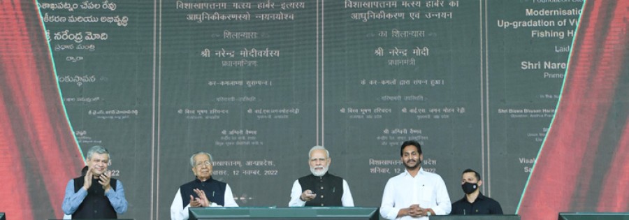 प्रधानमंत्री नरेंद्र मोदी ने आंध्रप्रदेश में आधुनिक प्रौद्योगिकी के जरिए समुद्र की गहराई से ऊर्जा प्राप्त करने का उदाहरण दिया। उन्होंने रेखांकित कियाकि सरकार ब्लू इकोनॉमी पर ध्यान देरही है, ब्लू इकोनॉमी पहलीबार इतनीबड़ी प्राथमिकता बनगई है। उन्होंने मछुआरों केलिए किसान क्रेडिट कार्ड और विशाखापत्तनम में आज शुरू होनेवाले मछली बंदरगाह के आधुनिकीकरण जैसे उपायों का भी उल्लेख किया। प्रधानमंत्री ने उल्लेख कियाकि सदियों से समुद्र भारत केलिए समृद्धि का स्रोत रहा है तथा हमारे समुद्री तट इस समृद्धि का प्रवेशद्वार रहे हैं। उन्होंने कहाकि करोड़ों रुपये की कीमत वाली परियोजनाएं, जो देशके बंदरगाहों के विकास केलिए हैं, उनमें आज केबाद और विस्तार होगा। संबोधन का समापन करते हुए प्रधानमंत्री ने कहाकि 21वीं सदी का भारत विकास के समग्र विचार को जमीन पर उतार रहा है। उन्होंने विश्वास व्यक्त कियाकि आंध्रप्रदेश देशके इस विकास अभियान में केंद्रीय भूमिका निभाता रहेगा। इस अवसर पर आंध्रप्रदेश के मुख्यमंत्री वाईएसआर जगन रेड्डी, आंध्रप्रदेश के राज्यपाल बिस्वभूषण हरिचंदन, रेलमंत्री अश्विनी वैष्णव, संसद सदस्य और आंध्रप्रदेश विधानपरिषद के सदस्य भी उपस्थित थे।