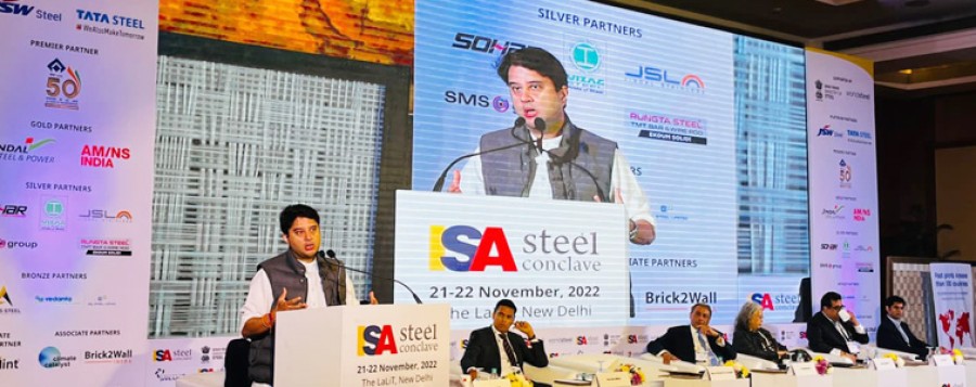 इस्पात मंत्री ने कहाकि प्रधानमंत्री नरेंद्र मोदी ने प्रतिवर्ष लगभग 17 लाख करोड़ रुपये पूंजीगत बुनियादी ढांचे को बढ़ाने केलिए जनादेश दिया है, इस प्रकार इस्पात की मांग लगभग दो अंकों (लगभग 10 प्रतिशत प्रतिवर्ष) तक बढ़ रही है। उन्होंने कहाकि इस्पात क्षेत्र न केवल कोविड-19 के चरम पर होने के दौरान एक कठिन समय से उभरा है, बल्कि यह और मजबूत, अधिक लचीला, वैश्विक, केंद्रित और प्रतिबद्ध क्षेत्र के रूपभी उभरा है, इस क्षेत्र ने आठ वर्ष में एक बड़ा परिवर्तन देखा है और यह विश्वस्तर पर चौथे सबसे बड़े उत्पादक से अब दूसरे सबसे बड़े उत्पादक और स्टील के दूसरे सबसे बड़े उपभोक्ता के रूपमें उभरा है। ज्योतिरादित्य सिंधिया ने कहाकि इस परिवर्तनकारी विकासपथ की कल्पना प्रधानमंत्री नरेंद्र मोदी ने 2047 में शताब्दीकाल में एक आत्मनिर्भर भारत के रूपमें की है, इस मिशन में बुनियादी ढांचे और विनिर्माण को बढ़ावा देना शामिल होगा, जिनमें से स्टील एक महत्वपूर्ण आधारभूत अंश है, इसके लिए उन्होंने मेड इन इंडिया स्टील ब्रांड स्थापित करने पर भी जोर दिया।