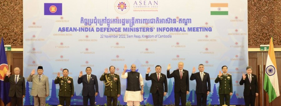 सिएम रीप (कंबोडिया)। भारत-आसियान संबंधों की 30वीं वर्षगांठ मनाने केलिए कंबोडिया के सिएम रीप में भारत-आसियान रक्षामंत्रियों की पहली बैठक हुई, जिसे 'आसियान-भारत मैत्री वर्ष' के रूपमें भी नामित किया गया है। बैठक की सहअध्यक्षता रक्षामंत्री राजनाथ सिंह और कंबोडिया के उप प्रधानमंत्री एवं रक्षामंत्री जनरल टी बान ने की। यह बैठक 9वीं आसियान रक्षामंत्रियों की बैठक प्लस से पहले हुई है। रक्षामंत्री राजनाथ सिंह ने आसियान देशों केसाथ भारत के ऐतिहासिक एवं मजबूत संबंधों का उल्लेख किया। उन्होंने कहाकि भारत-आसियान संबंध हाल हीमें 12 नवंबर 2022 को कंबोडिया में आसियान-भारत शिखर सम्मेलन के दौरान व्यापक रणनीतिक साझेदारी के स्तर तक बढ़ चुके हैं। राजनाथ सिंह ने कहाकि हिंद-प्रशांत क्षेत्र में आसियान की केंद्रीयता भारत की एक्ट ईस्ट नीति की आधारशिला है।