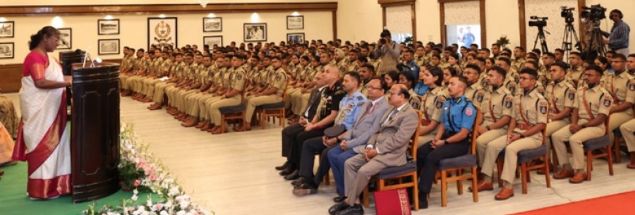 राष्ट्रपति द्रौपदी मुर्मू ने कहाकि पुलिस सरकार का सबसे प्रत्यक्ष अंग है, जब पुलिस बल लोगों का भरोसा जीतता है तो यह सरकार की छवि को बढ़ाता है और पुलिस का सम्मान एवं विश्वास तभी होगा, जब अंतिम कांस्टेबल तक सतर्कता, संवेदनशीलता और ईमानदारी प्रदर्शित करेगा। द्रौपदी मुर्मू ने आईपीएस प्रोबेशनर्स से कहाकि अपने बल के नेताओं के रूपमें आपको इन पांच मूलभूत गुणों अखंडता, निष्पक्षता, साहस, योग्यता और संवेदनशीलता को ध्यान में रखना होगा और कार्रवाई के माध्यम से प्रदर्शित करना होगा। राष्ट्रपति ने कहाकि अपराध की रोकथाम और उसका पता लगाने एवं कानून के शासन को बनाए रखने की जिम्मेदारी अधिक जटिल होती जा रही है। उन्होंने कहाकि आतंकवाद, उग्रवाद विचारधारा से प्रेरित हिंसक उग्रवाद, सांप्रदायिक हिंसा, संगठित अपराध के बड़े नेटवर्क और आंतरिक सुरक्षा केलिए अन्य खतरों से निपटने केलिए उच्चस्तर की प्रेरणा, कौशल और दृढ़ता की आवश्यकता है, साइबर अपराध और सोशल मीडिया से जुड़े मुद्दे नई चुनौतियां पेश कर रहे हैं। उन्होंने कहाकि हाईटेक अपराधों से निपटने केलिए प्रौद्योगिकी संचालित पुलिसिंग की आवश्यकता है।